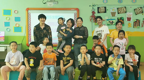 济南嘉乐生殖医院爱心志愿者与康复中心工作人员以及孩子们合影