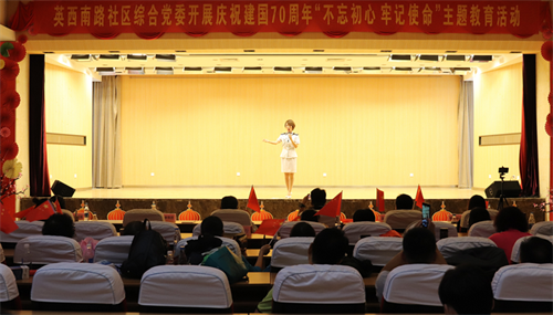全体起立,奏唱国歌活动在庄严肃穆的国歌声中拉开帷幕。“在祖国母亲生日即将到来之际,我们组织辖区优秀单位,希望通过文艺汇演的形式,共同庆祝伟大祖国生日,希望我们每个人,每个单位都能够像我们的祖国一样,站起来、富起来、强起来,用自己的双手创造辉煌,筑梦新时代。”英西南路社区综合党委书记许延萍女士说道。