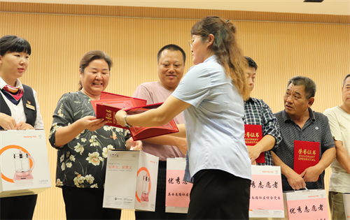 济南嘉乐生殖医院张衍俊主任接过荣誉证书 及社区优秀志愿者奖品