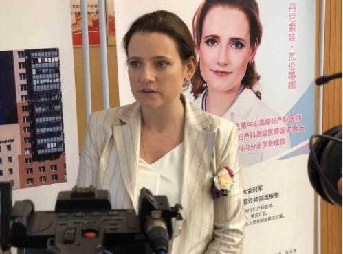 图为丹尼索娃博士在济南嘉乐生殖医院接受采访