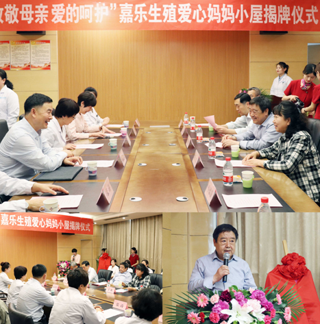 济南嘉乐医院“妈妈小屋”是在市总工会的大力支持下建成的,济南市总工会副主席于虹出席揭牌仪式,并同省国防机械电子工会主席葛永胜、济南市市中区总工会党组书记王恒和济南嘉乐生殖医院工会主席马艳同志共同为“妈妈小屋”揭牌。