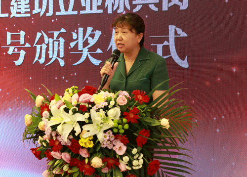 图为济南市总工会副主席、党组成员于虹同志在颁奖仪式上讲话