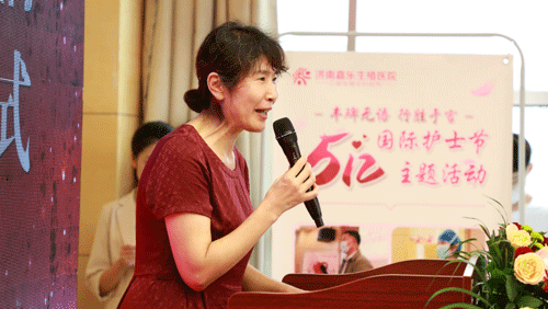 图为济南嘉乐生殖医院工会主席马艳在颁奖仪式上讲话